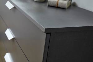 Comoda este realizata din panouri aglomerate din lemn crud, fara compusi chimici (formaldehida).