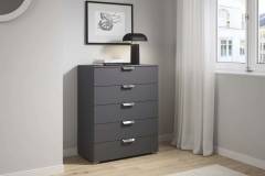 Comoda cu 5 sertare ADITIO 80x100x42cm gri metalic, manere crom