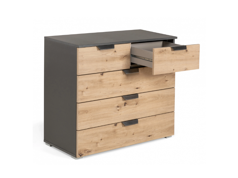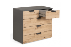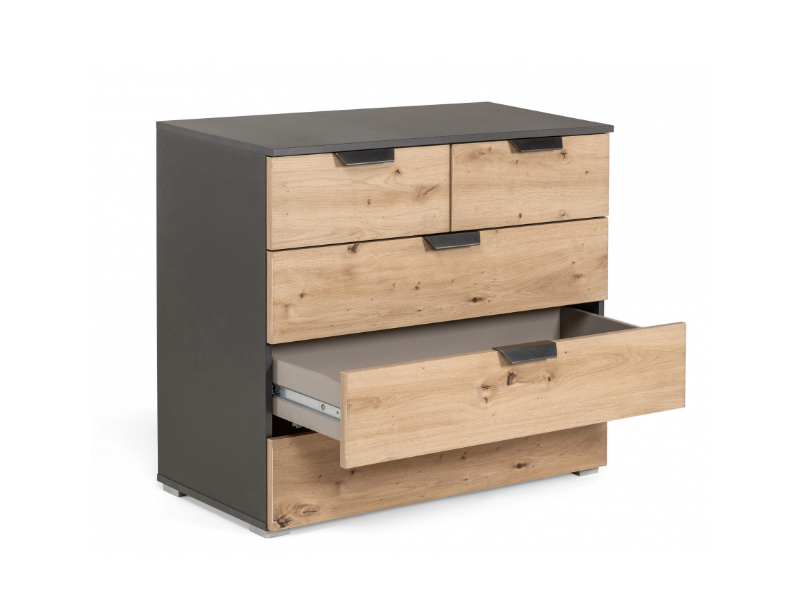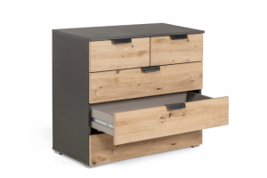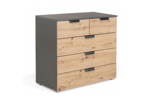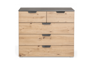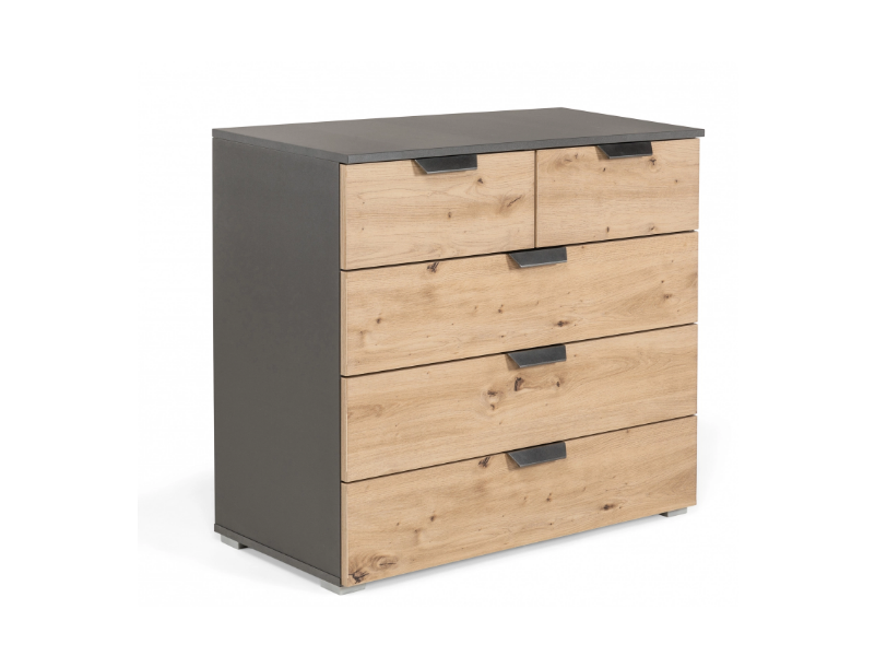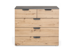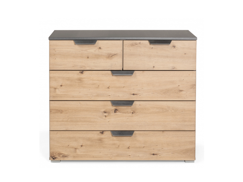 Comoda cu 5 sertare ADITIO 80x81x42cm gri metalic/ stejar aritsan, manere gri metalic