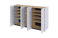 - standard comoda vine cu cate 2 polite per compartiment, in total 6 polite