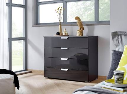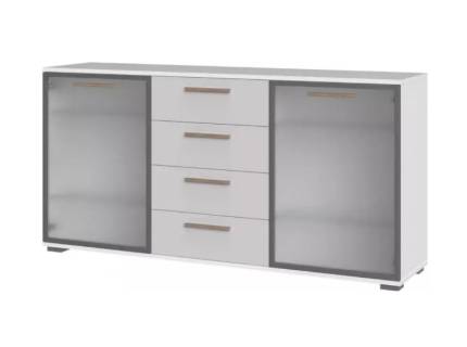 Comoda cu 4 sertare ADITIO 80x81x42cm gri metalic/ sticla basalt