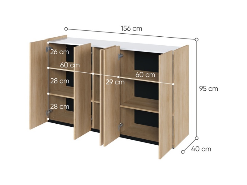 Comoda EASY EA-01 cu 5 usi 156x95x40cm stejar/ alb lucios
