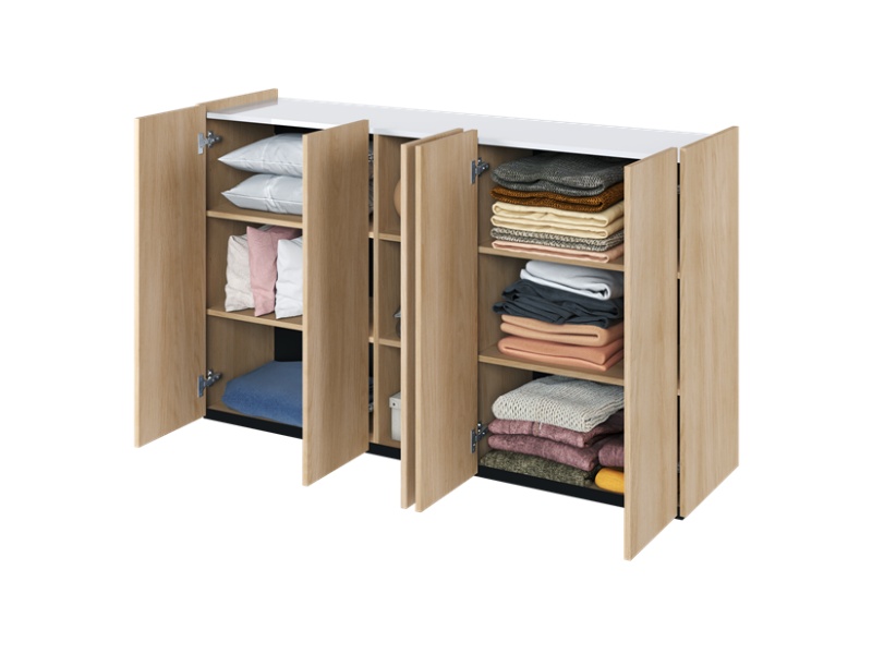 - standard comoda vine cu cate 2 polite per compartiment, in total 6 polite