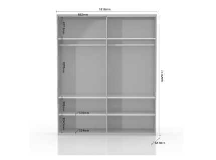 Dulap cu usi glisante PIANO WHITE 182x224x61cm alb lucios, maner crom