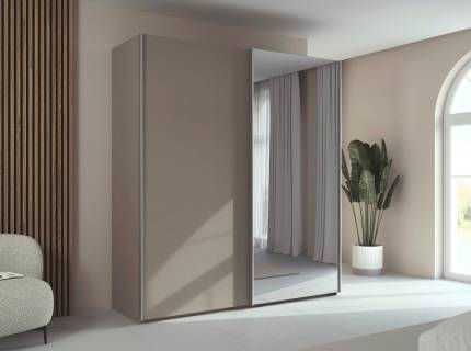 Dulap cu usi glisante TARO 201x223x69cm fango/ oglinda, maner aluminiu
