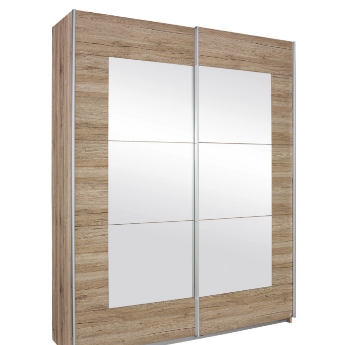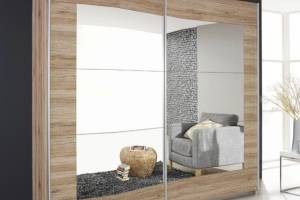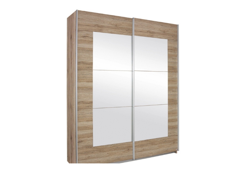 Dulap cu usi glisante ALEGRO 181x210x62cm stejar sanremo/ oglinda, maner aluminiu