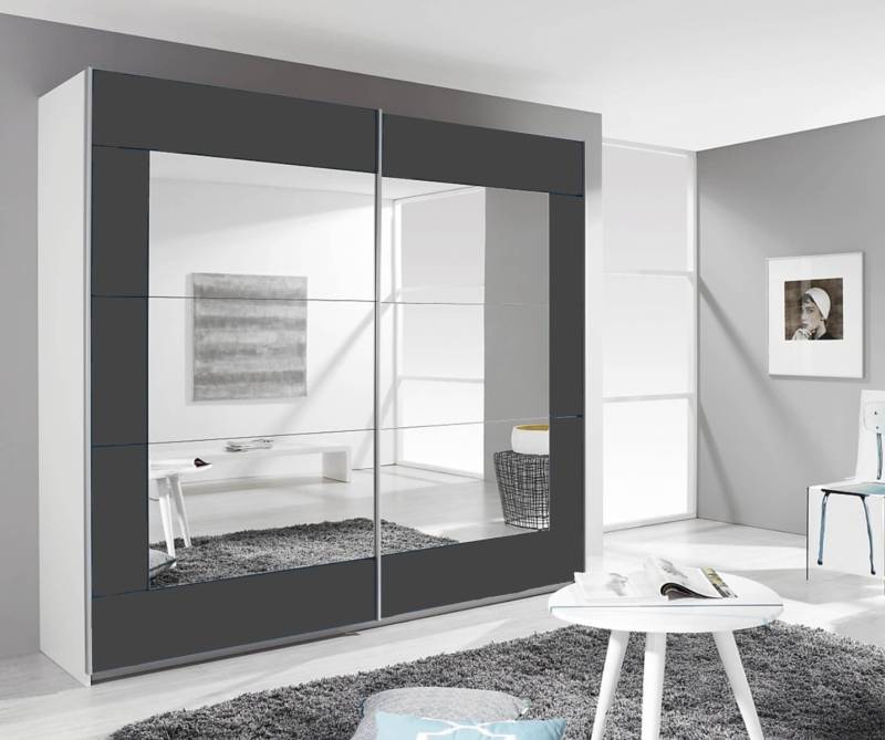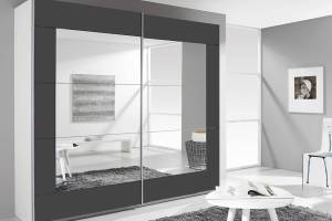 Dulap cu usi glisante ALEGRO 226x210x62cm alb alpin/ gri metalic - oglinda, maner aluminiu