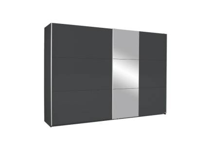 Dulap cu usi glisante KRONACH I 261x210x59cm gri metalic/ oglinda, maner aluminiu