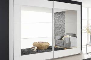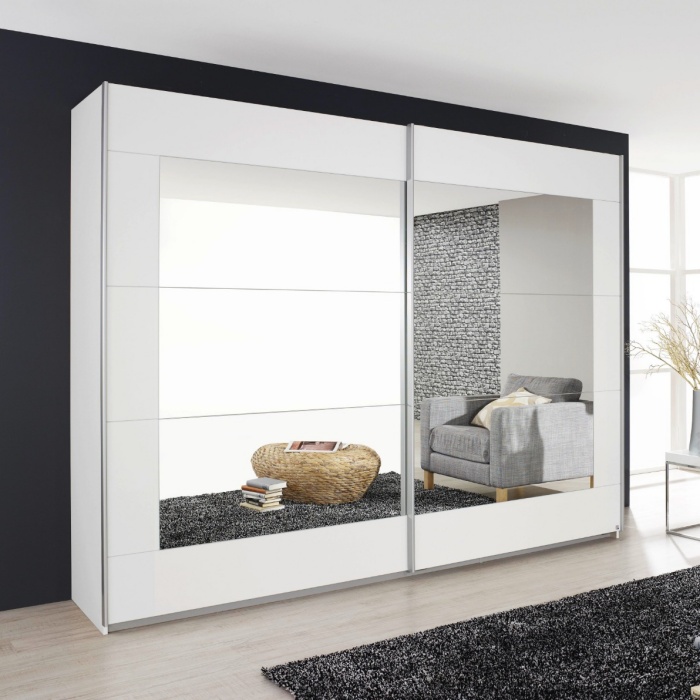 Dulap cu usi glisante ALEGRO 271x210x62cm alb alpin/ oglinda, maner aluminiu