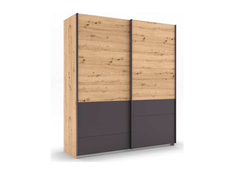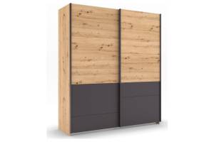 Dulap cu usi glisante BILBAO 181x210x62cm stejar artisan/ gri metalic, maner gri metalic