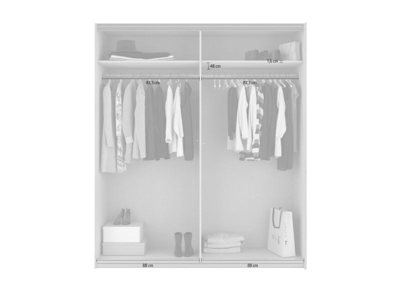 - Dulapul are inclusa 1 polite si 1 bara pentru umers pentru fiecare compartiment, in total 2 polite si 2 bare pentru umerase.