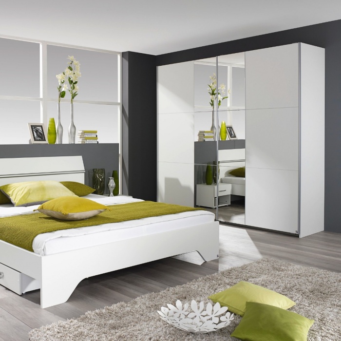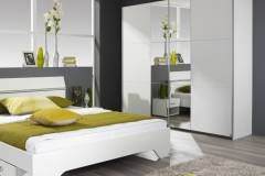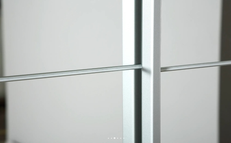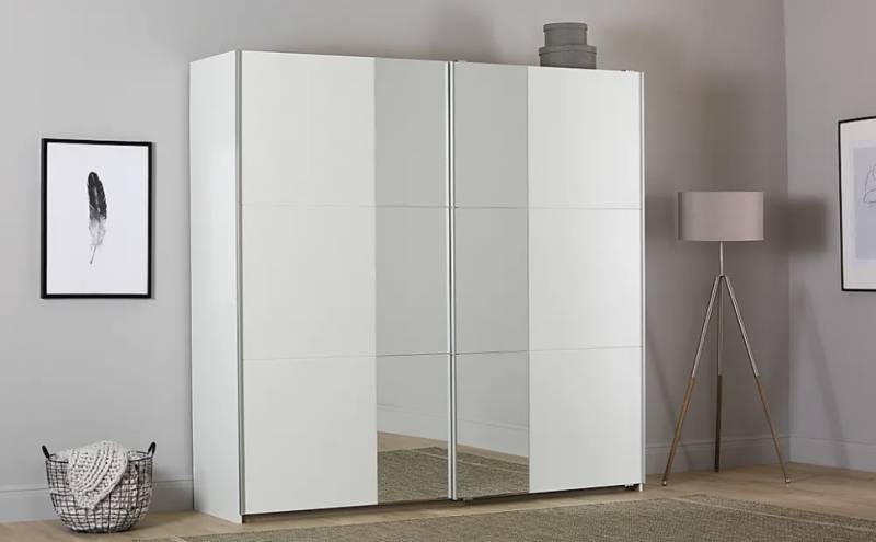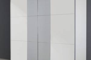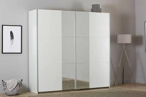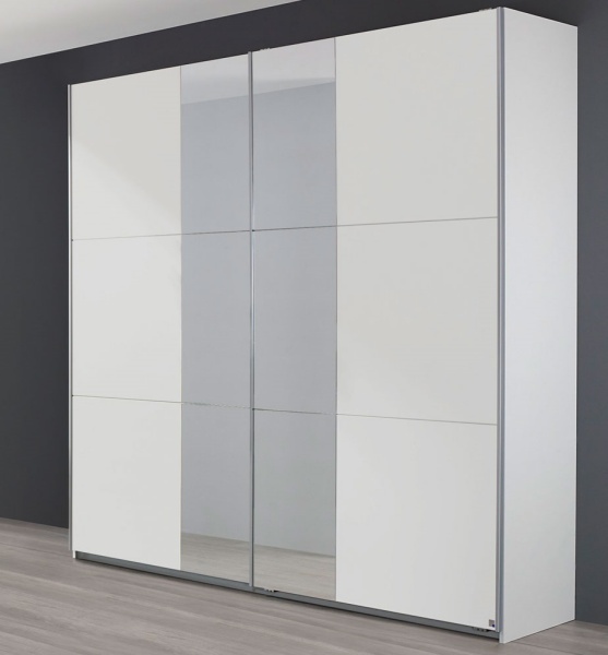 Dulap cu usi glisante FELLBACH 218x210x59cm alb alpin/ oglinda, maner aluminiu