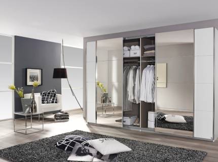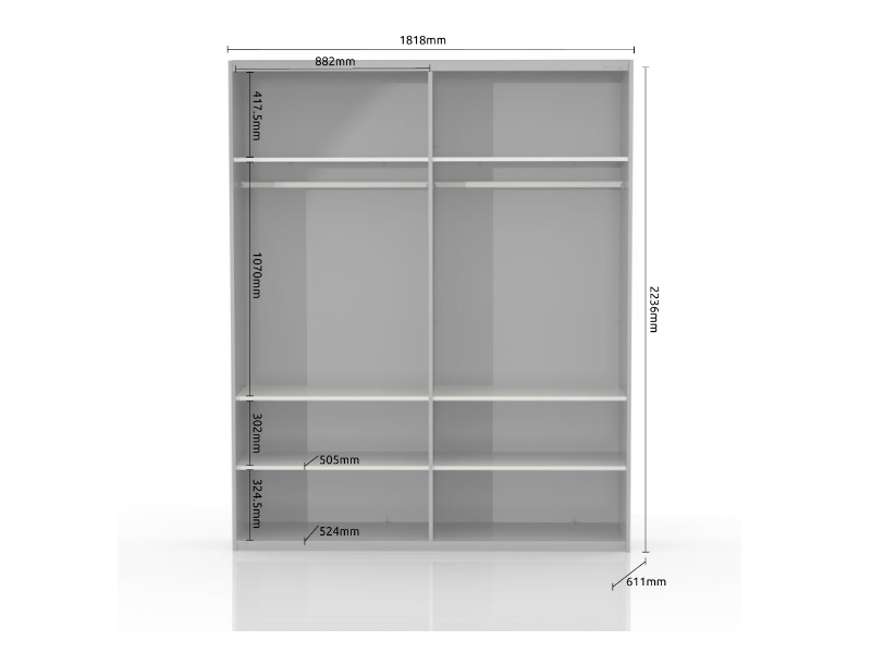 Dulap cu usi glisante GALA 182x224x61cm bej lucios/ nuc Pacific, maner crom