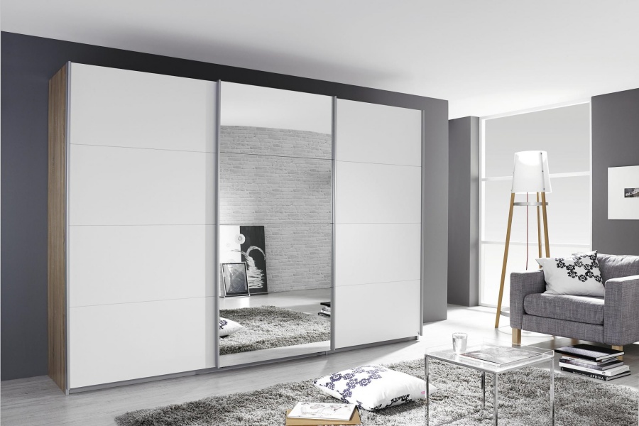 Dulap cu usi glisante GANDRA 271x210x62cm sanremo/ alb alpin - oglinda, maner aluminiu