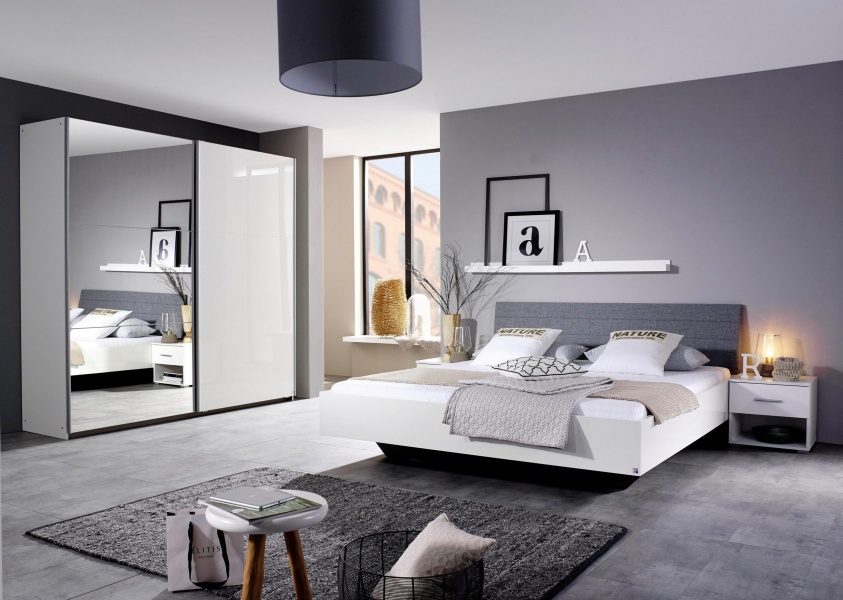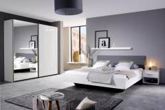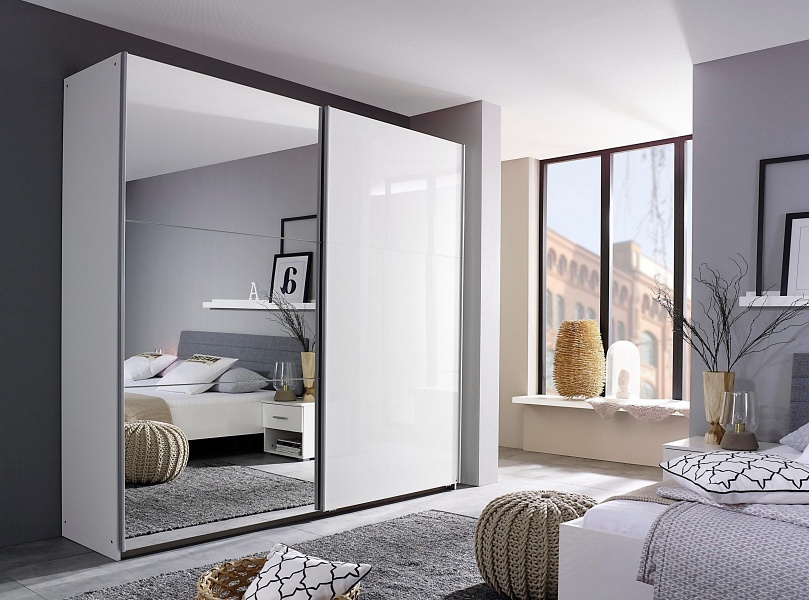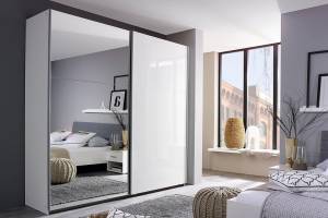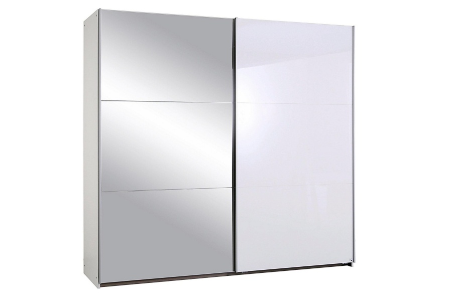 Dulap cu usi glisante HALLE 175x210x59cm alb alpin/alb lucios - oglinda, maner aluminiu