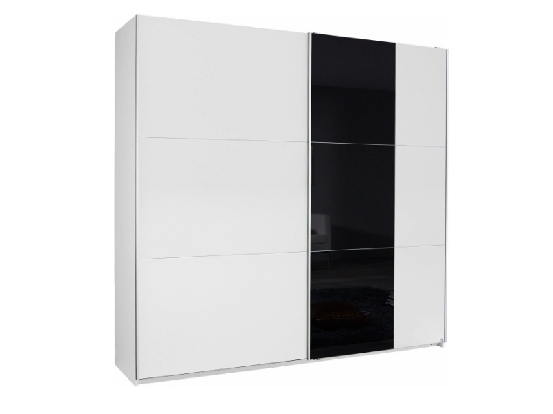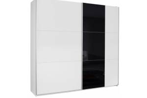 Dulap cu usi glisante KRONACH COLOR I 218x210x59cm alb alpin/ sticla neagra, maner aluminiu