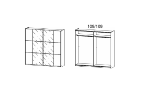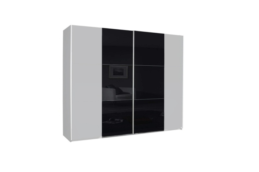 Dulap cu usi glisante KRONACH COLOR II 218x210x59cm alb alpin/ sticla neagra, maner aluminiu