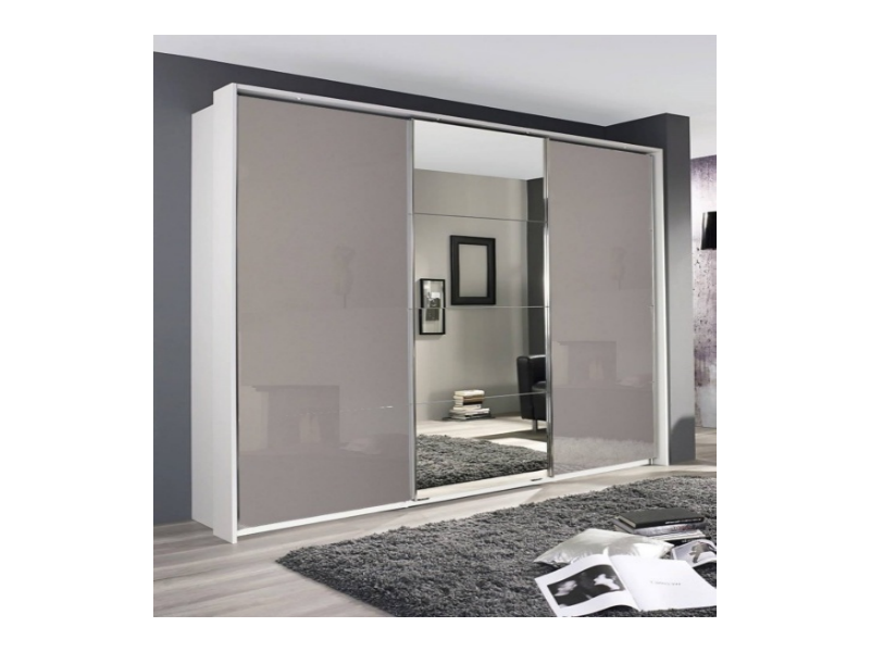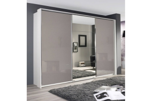 Dulap cu usi glisante KULMBACH 203x210x62cm alb alpin/ sticla fango - oglinda