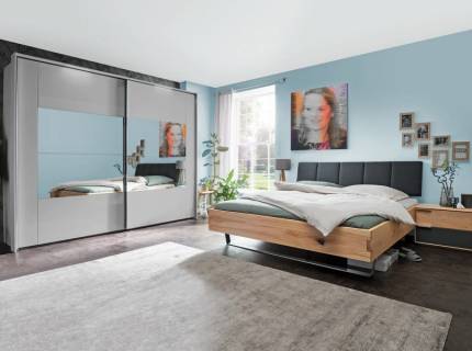 Dulap cu usi glisante KRONACH I 218x210x59cm gri metalic/ oglinda, maner aluminiu