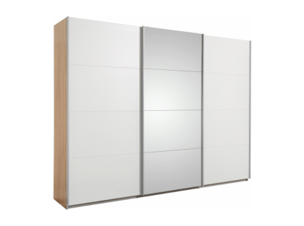Dulap cu usi glisante KULMBACH 271x210x62cm alb alpin/ 3 usi sticla alba configurabil
