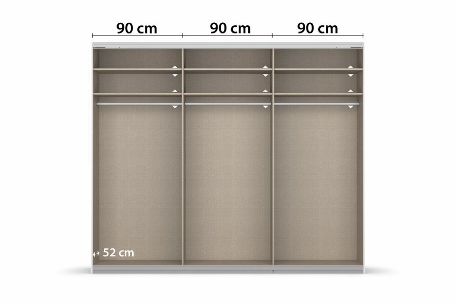 Standard la dulap primiti cate 2 polite si 1 bara pentru umeras pentru fiecare compartiment in parte, in total 6 polite +  3 bare.