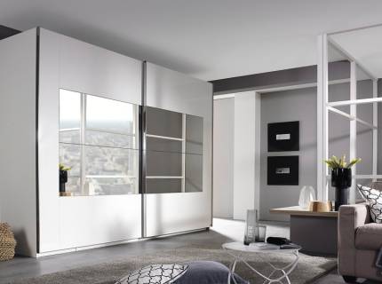Dulap cu usi glisante KULMBACH 361x210x62cm alb alpin/oglinda configurabil