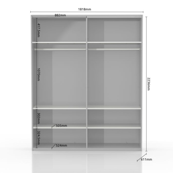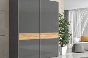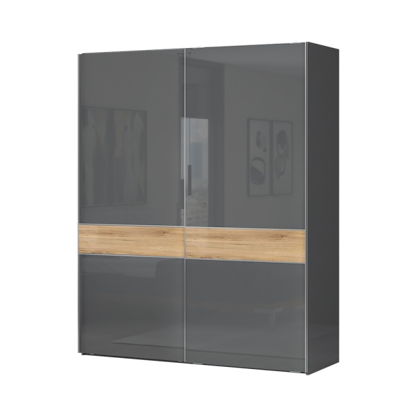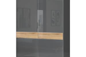 Dulap cu usi glisante ONYX 182x224x61cm antracit lucios/ nuc Pacific, maner crom