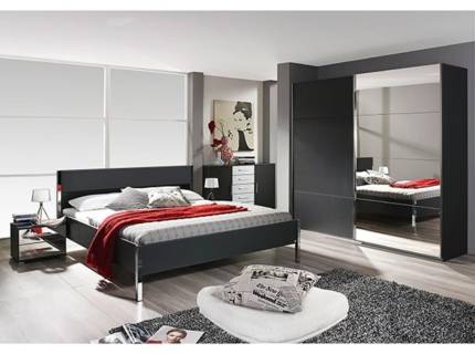 Dulap cu usi glisante ONYX 182x224x61cm antracit lucios/ nuc Pacific - oglinda, maner crom