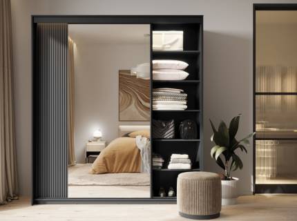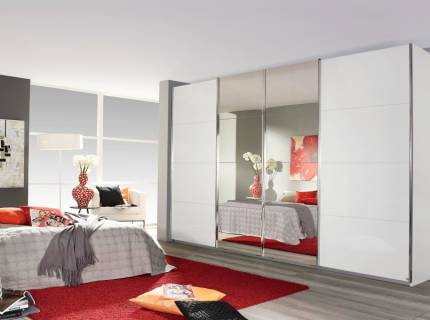 Dulap cu usi glisante PIANO WHITE 182x224x61cm alb lucios, maner crom