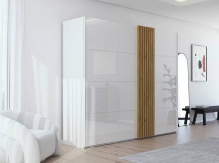 Dulap cu usi glisante PIANO WHITE 272x224x61cm alb lucios, maner crom