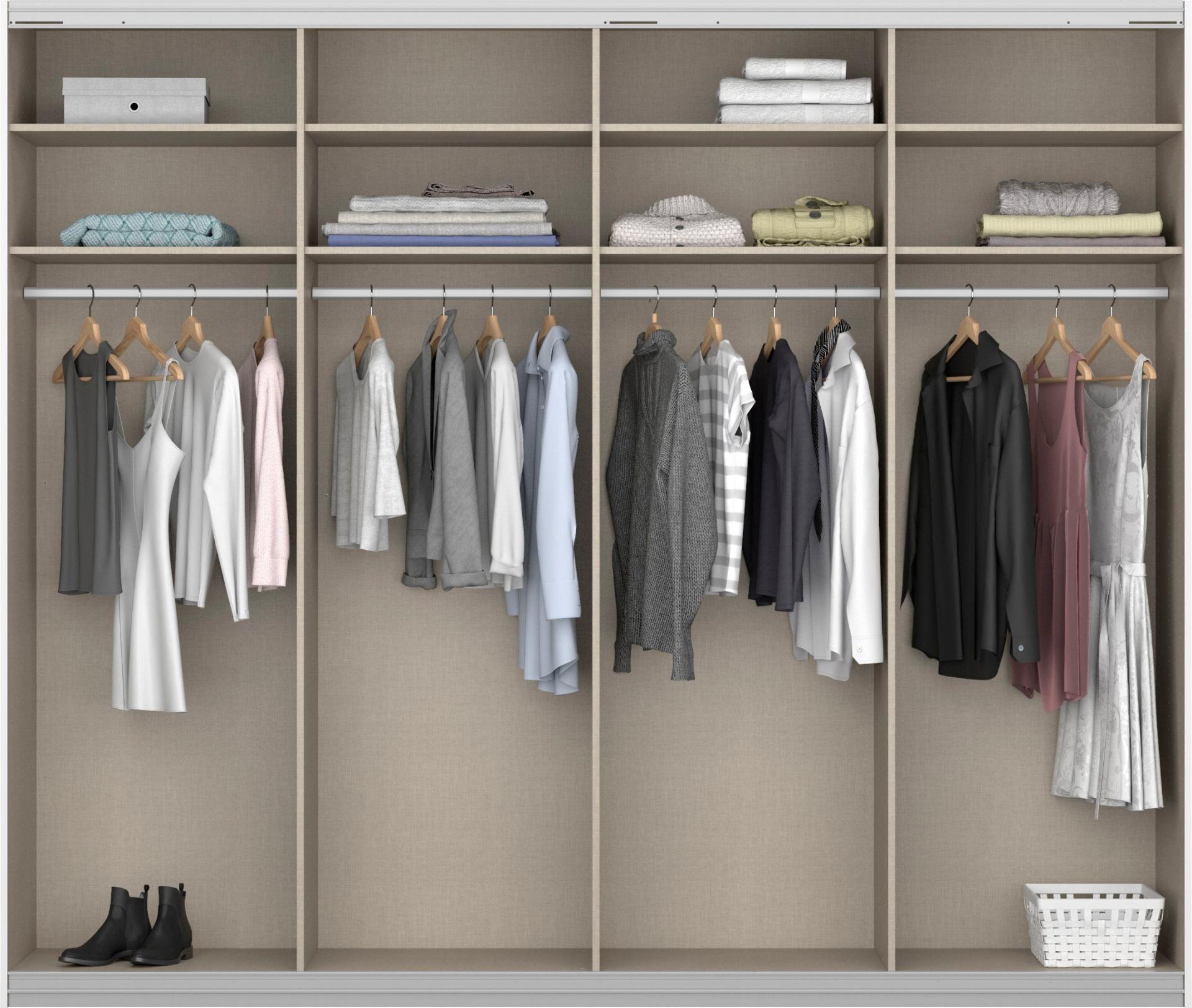 - Dulapul are inclus 1 polita si 1 bara pentru umeras, in total 4 polite 66x48cm si 4 bare pentru umerase.