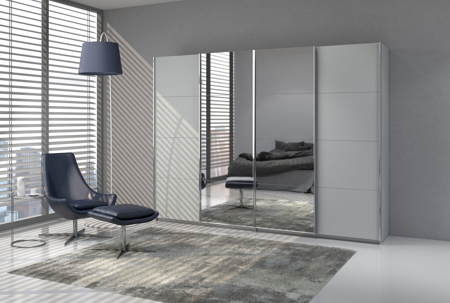 Dulap cu usi glisante SYNCRONO 271x211x62cm silk grey/ oglinda configurabil