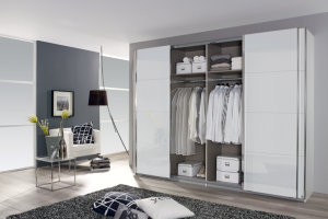 Dulap cu usi glisante SYNCRONO 271x230x62cm alb alpin/ 2 usi sticla alba configurabil