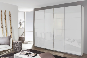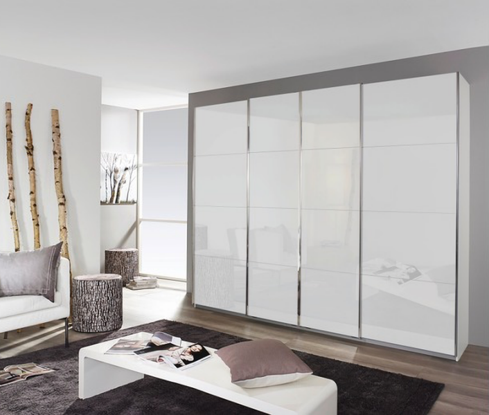 Dulap cu usi glisante SYNCRONO 271x230x62cm alb alpin/ 4 usi sticla alba configurabil