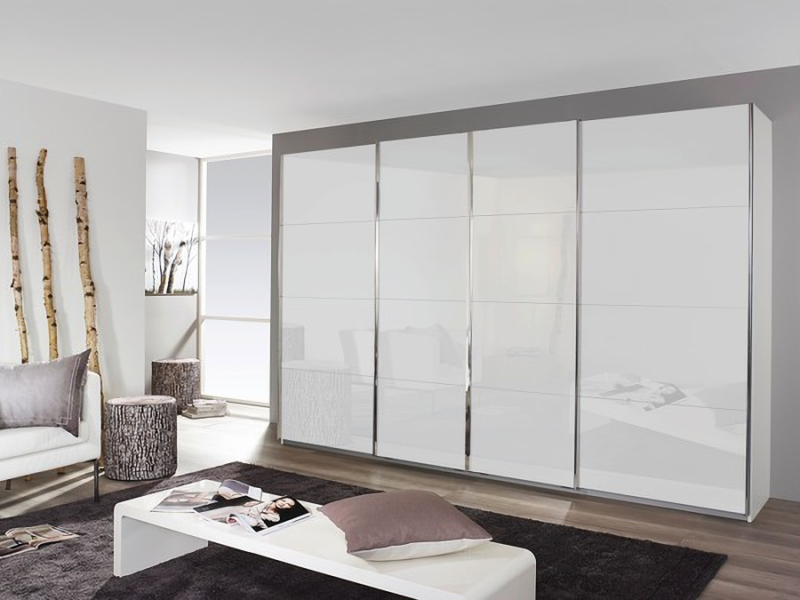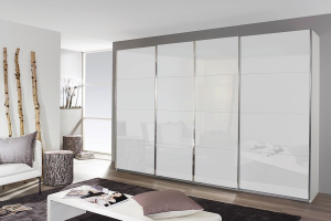 Dulap cu usi glisante SYNCRONO 316x211x62cm alb alpin/ 4 usi sticla alba configurabil