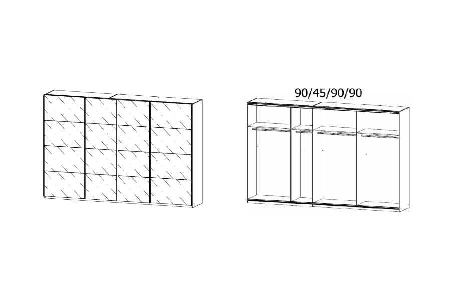 - 4 compartimente: 3 compartimente de 90cm si 1 compartimet de 45cm.