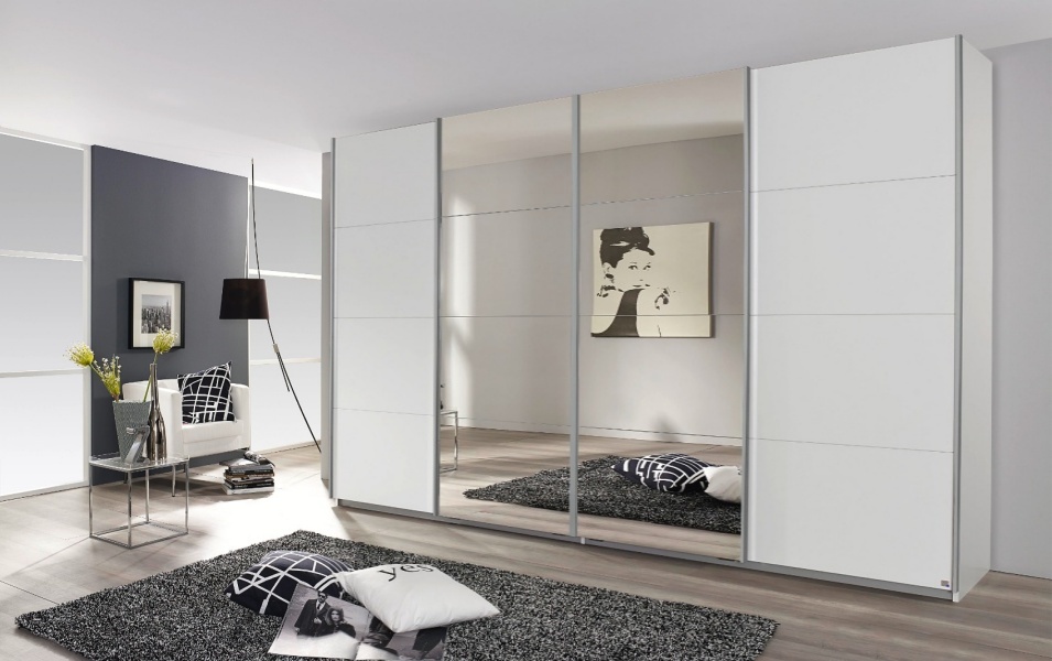 Dulap modern alb alpin cu oglinda 316x211x62cm – spatiu generos si design elegant. SYNCRONO adauga luminozitate si rafinament dormitorului, oferind depozitare eficienta si un aspect contemporan. Perfect pentru organizarea hainelor si accesoriilor.