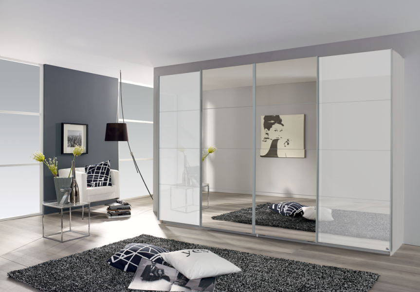 Dulap cu usi glisante SYNCRONO 316x211x62cm alb alpin/ sticla alba - oglinda configurabil