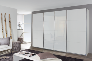 Dulap cu usi glisante SYNCRONO 316x230x62cm alb alpin/ 2 usi sticla alba configurabil