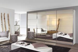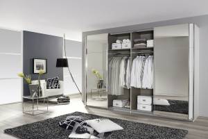 Dulap cu usi glisante SYNCRONO 316x230x62cm alb alpin/ 4 usi oglinda configurabil
