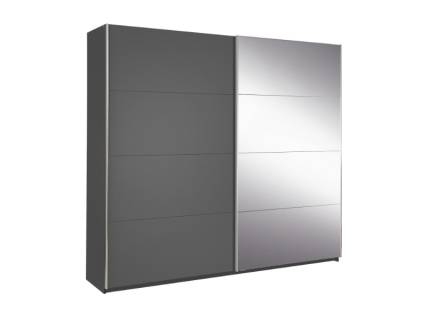 Dulap cu usi glisante MOITA 226x210x62cm gri metalic/ oglinda, maner crom