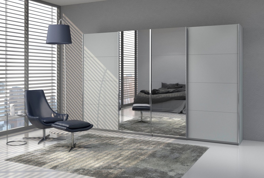 Dulap silk grey cu oglinda, 316x230x62 cm – spatiu generos si design rafinat pentru dormitoare moderne. SYNCRONO imbina eleganta cu functionalitatea, oferind o solutie practica pentru organizarea hainelor si accesoriilor. Perfect pentru un decor sofisticat si aerisit.
