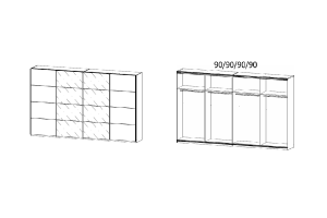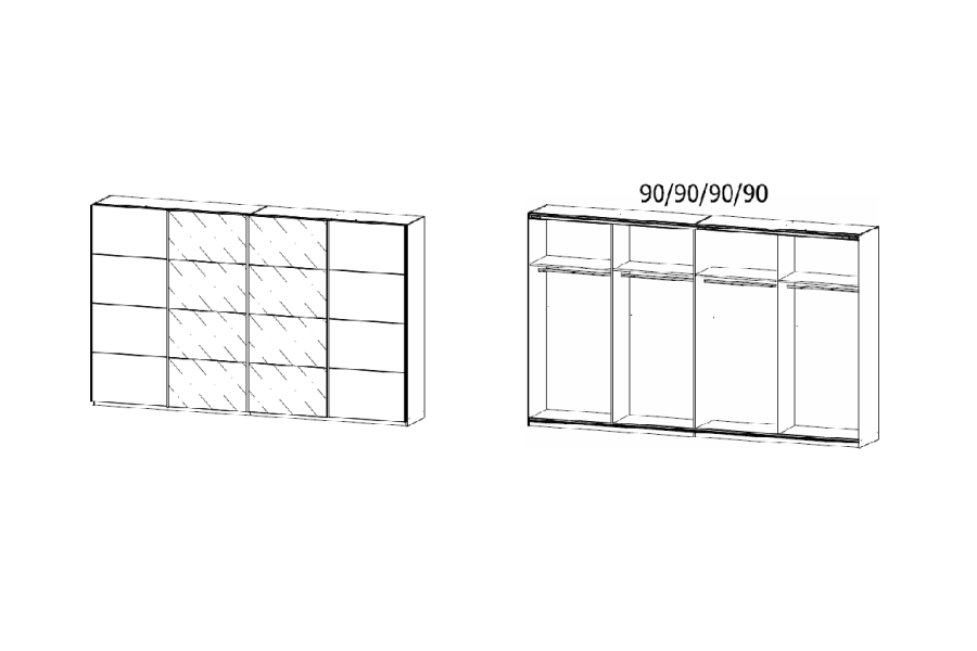 - Dulapul are inclus 4 polite si 4 bara pentru umeras pentru fiecare compartiment, in total 4 polite 88x48cm si 4 bare pentru umerase.