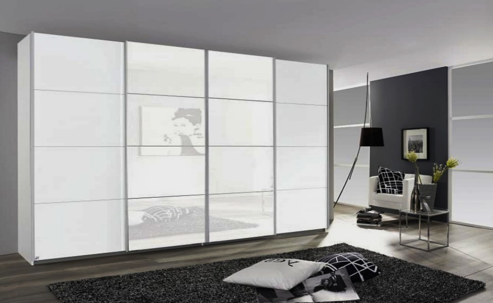 Dulap cu usi glisante SYNCRONO 361x211x62cm alb alpin/ 2 usi sticla alba configurabil