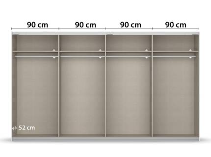 - Dulapul are inclus 1 polita si 1 bara pentru umeras pentru fiecare compartiment, in total 4 polite 88x48cm si 4 bare pentru umerase.