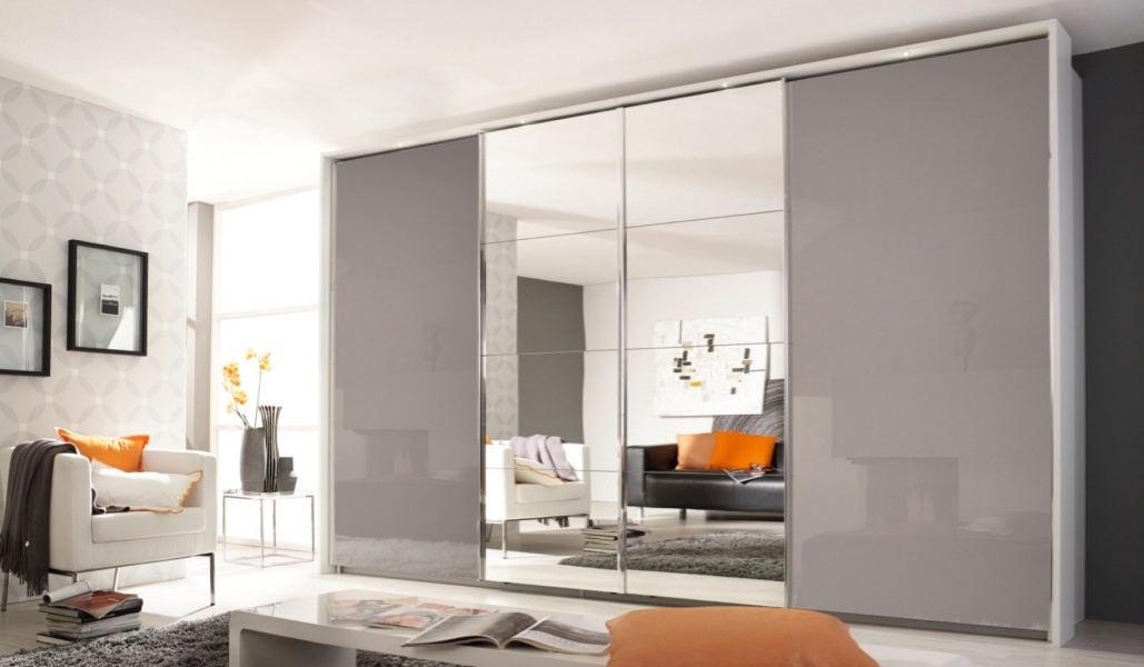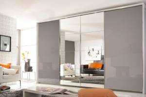 Dulap cu usi glisante SYNCRONO 361x211x62cm sticla fango/ oglinda, maner aluminiu