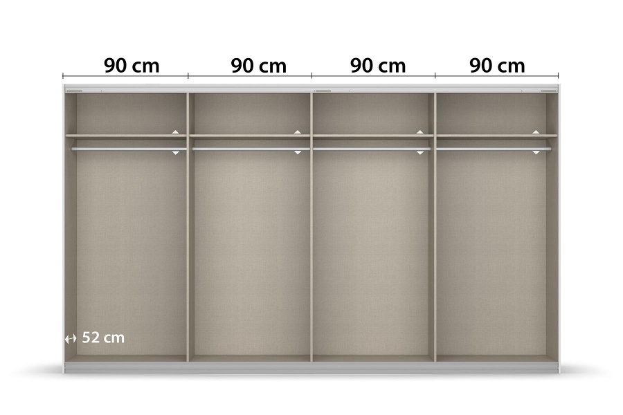 - Dulapul are inclus 1 polita si 1 bara pentru umeras pentru fiecare compartiment, in total 4 polite 88x48cm si 4 bare pentru umerase.