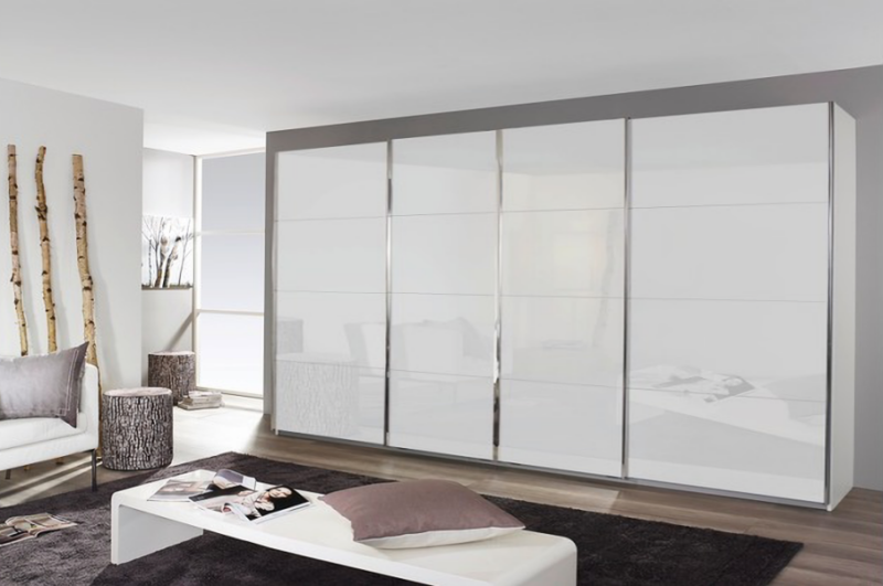 Dulap cu usi glisante SYNCRONO 361x230x62cm alb alpin/ 4 usi sticla alba configurabil
