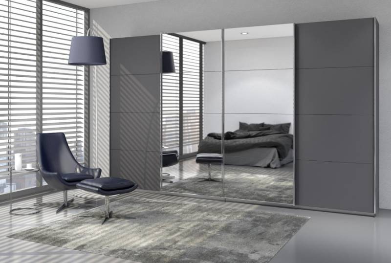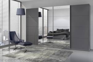 Dulap cu usi glisante SYNCRONO 361x230x62cm gri metalic/ oglinda configurabil