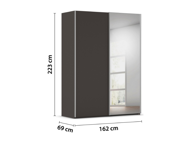 Dulap cu usi glisante TARO 162x223x69cm grafit/ oglinda, maner aluminiu